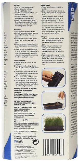 - Grass is ready when it reaches 10 cm (4″). Do not allow pet to eat substrate (it has no nutritive value). Growing medium may be recycled in garden or flower pots.