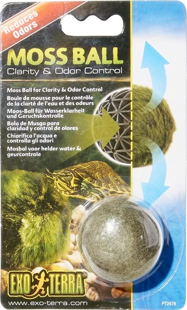 The Exo Terra Clarity & Odor Control Moss Ball for Turtles helps keep your tank’s water crystal clear and also reduces odors. Made to resemble its natural counterpart, this moss ball helps condition the water while blending in with your tank’s décor. A special absorption resin draws in and traps phosphate, nitrite and nitrate. As a result, less organic matter is able to build up, creating ideal conditions and better water quality.