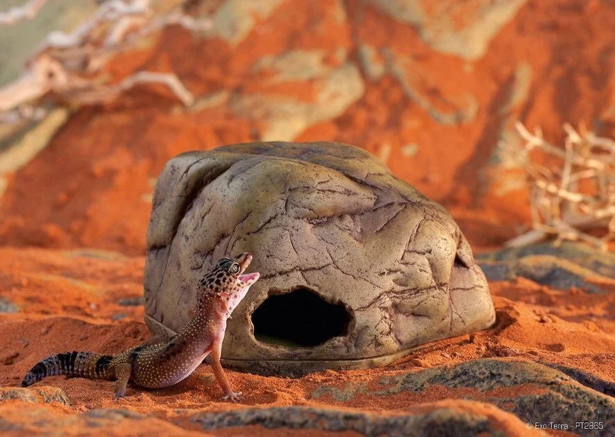 Add an extra hiding spot to your gecko’s habitat with the Exo Terra Gecko Cave for Reptiles. Giving your pet lizard a proper place to hide and sleep can reduce stress, which helps him maintain a healthy appetite along with ideal activity levels. The realistic-looking rock design of the Exo Terra Gecko Cave creates a more natural terrarium environment and integrates easily into desert and tropical environments. This cave not only provides shelter but also offers a cooler and more humid microclimate. It’s extremely stable and is not easy to tip over.