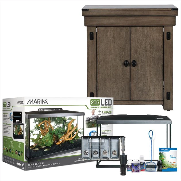 - Marina LED Aquarium Kit, 20-gal— Features a Marina Slim S20 clip-on filter with quick-change filter cartridges for easy maintenance in less than a minute.