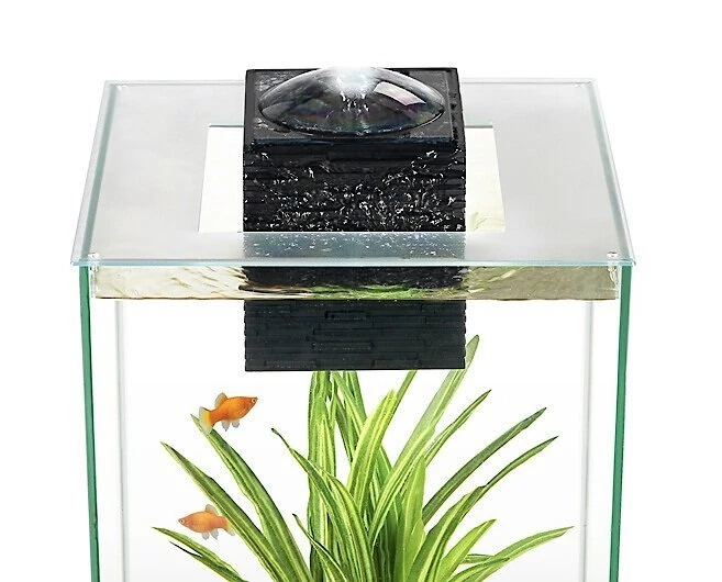 - Cutout at center accommodates tank’s waterfall function without impeding the calming effect of the bubbling water.