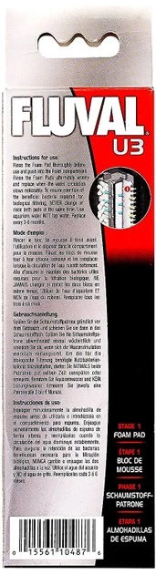 Keep your Fluval U3 Underwater Filter working effectively and remove large debris with Fluval U3 Foam Pad Filter Media. Fluval U3 Foam Pad Filter Media fits inside the filter chamber to prevent debris bypass for optimal mechanical filtration. Debris like fish waste, uneaten food and other material can cause harmful toxins like ammonia and phosphate to build up in your aquarium. The foam pad has a pore size that facilitates efficient water flow with less clogging, providing long-lasting filtration for cleaner, clearer water.