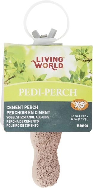 Living World Pedi-Perch Cement Bird Perch is an essential addition to your bird’s home. This cement bird perch helps naturally trim and maintain blunt, well-groomed nails as your bird moves about on it. The multi-grip wave surface promotes foot circulation and helps prevent arthritis and atrophy. In addition, this beneficial perch helps clean and condition your bird’s beak as he invariably pecks and bites at it.