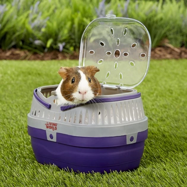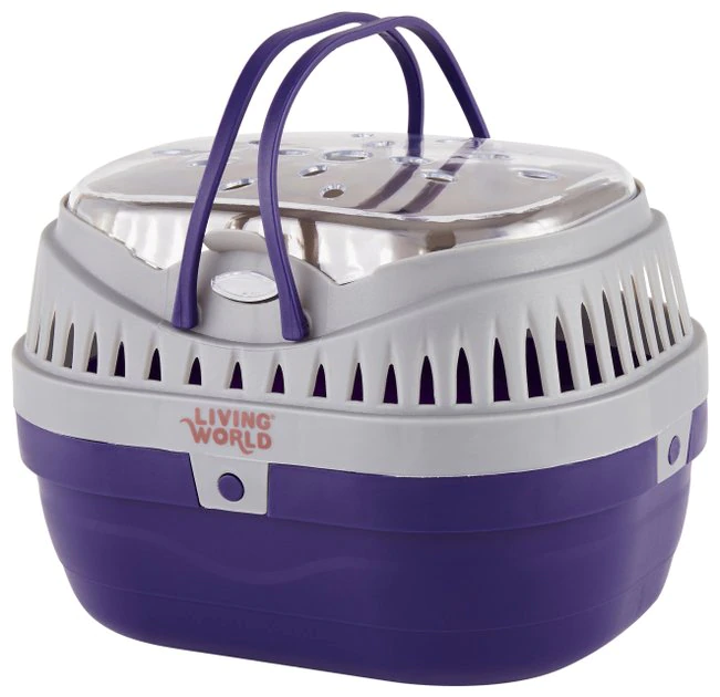 Living World Purple & Grey Small Animal Carrier provides a safe and simple solution for transporting your small pets, with dual handles for added stability. It also makes a perfect temporary home during cage cleanings. It features a large opening for easy pet access, a superior locking mechanism, and durable, chew-resistant plastic to keep your pet safely inside. A series of escape-proof slits along the top are designed and placed for optimal air ventilation, plus a ridge interior bottom keeps your small pet safe by providing the perfect surface to ensure she doesn’t slip around.